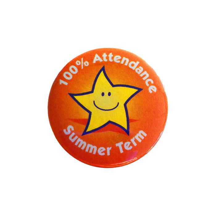 Perfect for rewarding students for their 100% attendance in the Summer term. The badges are 38mm. Pack of 20.