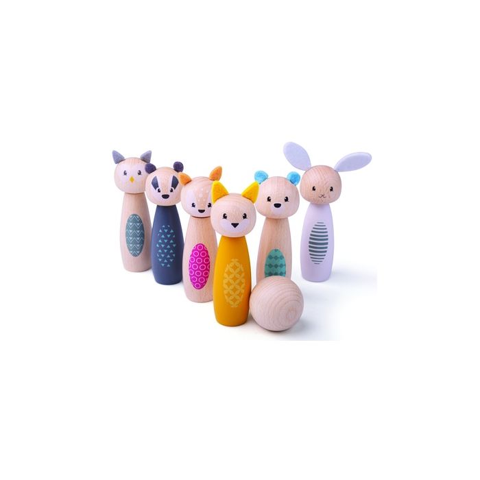 Encourage coordination and early numeracy skills with the 100% FSC Woodland Animal Skittles. Perfect for preschool and nursery settings, this eco-friendly wooden play set includes 6 charming animal skittles and 1 wooden bowling ball. Made from sustainably sourced materials, it supports fine motor development while providing engaging, screen-free fun. Ideal for ages 2 years+, this FSC animal bowling set is a great addition to any eco-conscious early years environment.