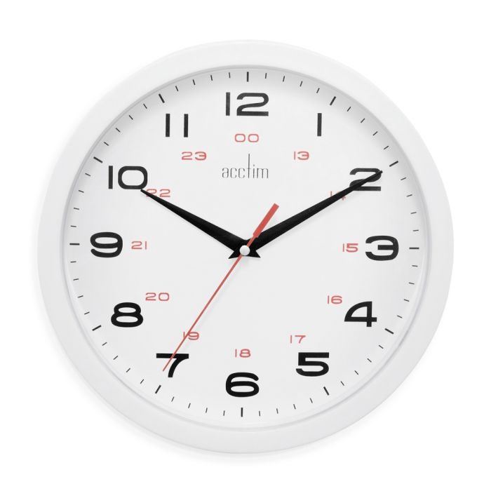 White with black hands - Black numerals for 12 hour clock - Red numerals for 24 hour clock - Requires 1 x AA battery (not included) - Each