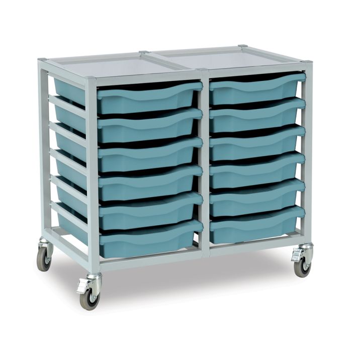 12 Single Tray Science Trolley Grey Frame Steel Blue