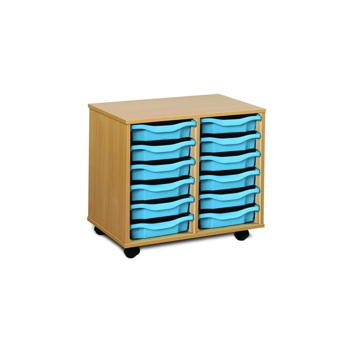Each tray unit is supplied with Monarch trays. They are fully assembled and constructed using 18mm FSC certified MFC and fitted together by cam and dowel construction. Each unit has a load capacity of 20kg. Supplied with strong non-marking, shatterproof, twin wheeled and hooded nylon castors (two with locking facility). Built in the UK to BS EN 16121:2013 Level 2 British Standard and EU equivalent in respect of strength, durability and stability. Complete with 5 year manufacturer's warranty. In a Beech finish. Unit dimensions W700 x D453 x H617mm. Single Tray dimensions W312 x D425 x H76mm.