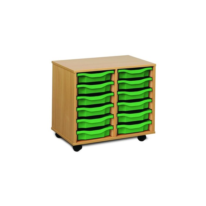 Each tray unit is supplied with Monarch trays. They are fully assembled and constructed using 18mm FSC certified MFC and fitted together by cam and dowel construction. Each unit has a load capacity of 20kg. Supplied with strong non-marking, shatterproof, twin wheeled and hooded nylon castors (two with locking facility). Built in the UK to BS EN 16121:2013 Level 2 British Standard and EU equivalent in respect of strength, durability and stability. Complete with 5 year manufacturer's warranty. In a Beech finish. Unit dimensions W700 x D453 x H617mm. Single Tray dimensions W312 x D425 x H76mm.