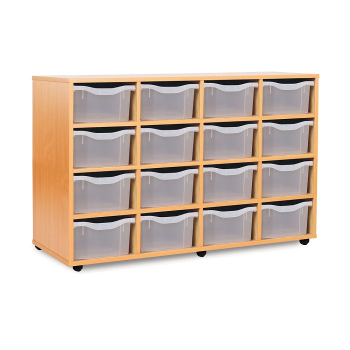 Each tray unit is supplied with Monarch trays. They are fully assembled and constructed using 18mm FSC certified MFC and fitted together by cam and dowel construction. Each unit has a load capacity of 20kg. Supplied with strong non-marking, shatterproof, twin wheeled and hooded nylon castors (two with locking facility). Built in the UK to BS EN 16121:2013 Level 2 British Standard and EU equivalent in respect of strength, durability and stability. Complete with 5 year manufacturer's warranty. In a Beech finish. Unit Dimensions W1358 x D453 x 835mm. Tray dimensions W312 x D425 x H152mm.
