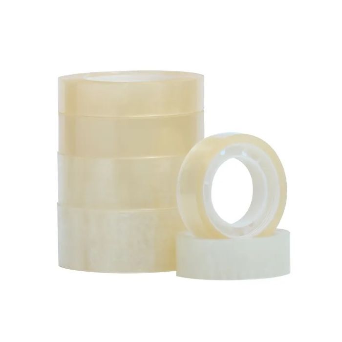Economy easy-tear self-adhesive tape roll. Strong polypropylene adhesive tape seals fast and holds tight, ideal for packing, wrapping and sealing. 24mm x 33m. Pack of 6.