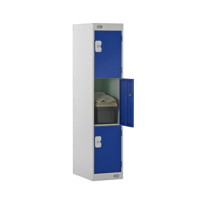 3 Door Metal Locker H1365mm x W300 x D300 Hasp & Stample Lock Blue