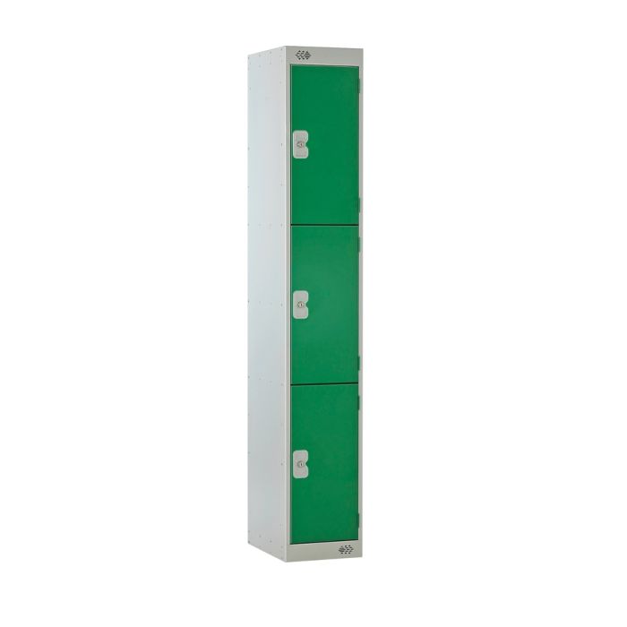 3 Door Metal Locker H1800mm x W300 x D300 Camlock Green