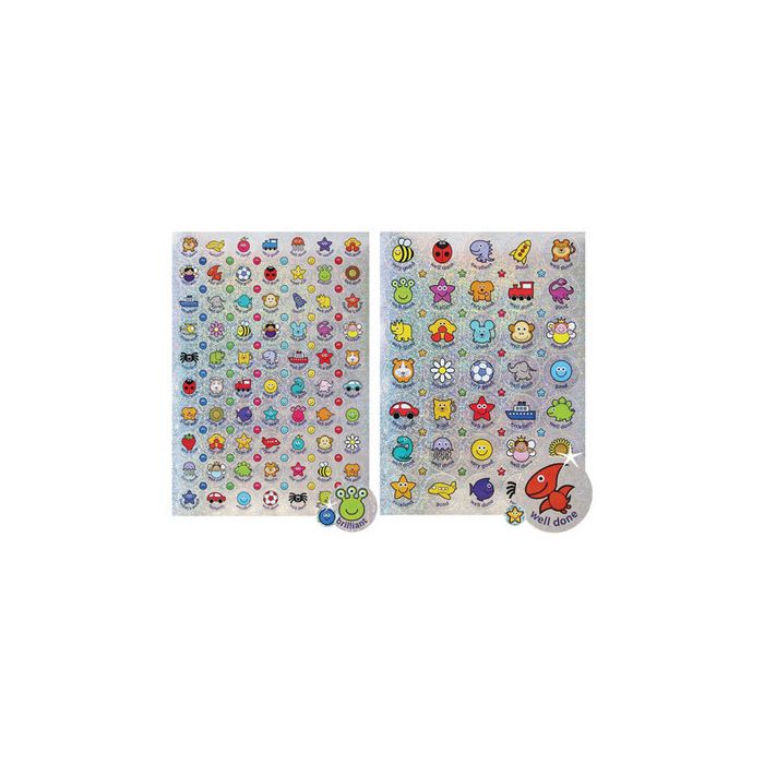 This pack has a variety of colourful characters and positive phrases. It includes a mixture of 35/25mm sparkly praise messages and 10mm sparkly no-words stickers. Perfect for rewarding your students. Pack of 723.