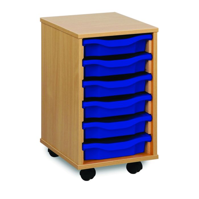 Each tray unit is supplied with Monarch trays. They are fully assembled and constructed using 18mm FSC certified MFC and fitted together by cam and dowel construction. Each unit has a load capacity of 20kg. Supplied with strong non-marking, shatterproof, twin wheeled and hooded nylon castors (two with locking facility). Built in the UK to BS EN 16121:2013 Level 2 British Standard and EU equivalent in respect of strength, durability and stability. Complete with 5 year manufacturer's warranty. In a Beech finish. Unit dimensions W360 x D453 x H617mm. Single Tray dimensions W312 x D425 x H76mm.