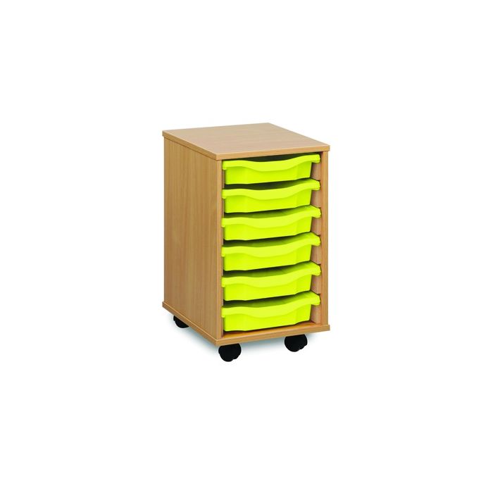Each tray unit is supplied with Monarch trays. They are fully assembled and constructed using 18mm FSC certified MFC and fitted together by cam and dowel construction. Each unit has a load capacity of 20kg. Supplied with strong non-marking, shatterproof, twin wheeled and hooded nylon castors (two with locking facility). Built in the UK to BS EN 16121:2013 Level 2 British Standard and EU equivalent in respect of strength, durability and stability. Complete with 5 year manufacturer's warranty. In a Beech finish. Unit dimensions W360 x D453 x H617mm. Single Tray dimensions W312 x D425 x H76mm.