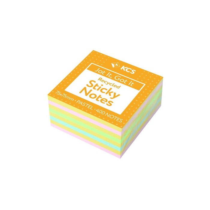 75 x 75mm 100% Recycled KCS Pastel Sticky Notes Cube 400 Notes