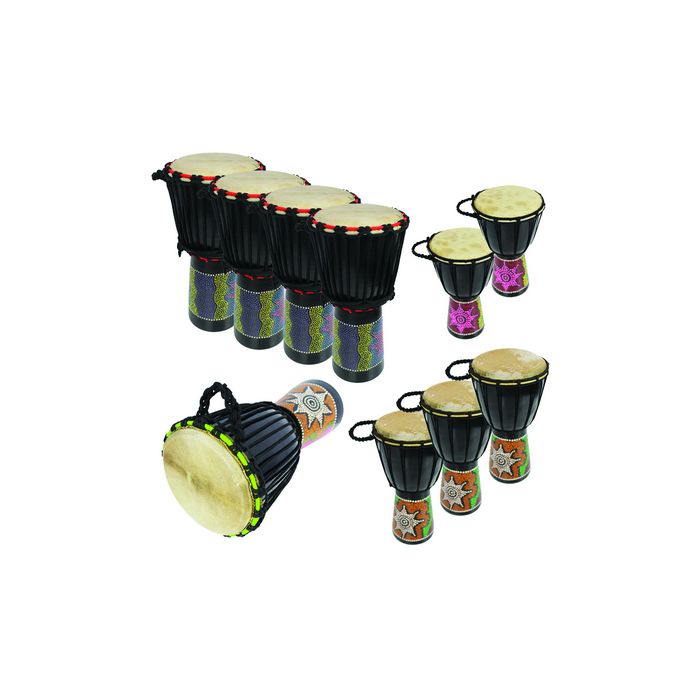 Starter pack designed especially for use in Education. Made from high quality solid wood and natural heads. 10 Player Pack Includes the following head sizes: 2 x 12.5, 3 x 15, 4 x 17.5 and 1 x 20cm