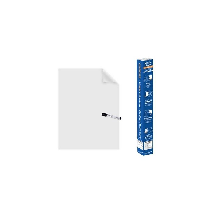 A1 magic whiteboard sheets create an instant writing surface so you can be prepared for anything. Erasable when used with a whiteboard marker or use permanent markers for a more intensive ink colour (longer drying time). No adhesive required and leaves no trace. Electrostatic foil easily sticks to almost any surface (wood, concrete, glass, wallpaper etc.). Re-positionable. Environmentally friendly. Roll width 60cm, perforations every 80cm. White foil, glossy look. Including one board marker. Clear. Pack 25 sheets.