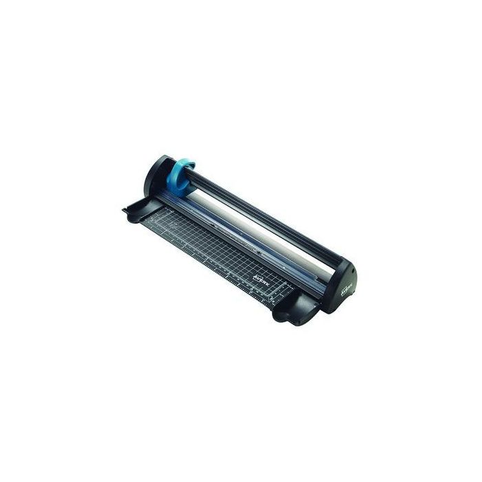 Ingenious compact design. Made from lightweight aluminium for strength and durability. Folds up for storage and safe carrying. Blade is safely enclosed in its cutter-head. 3 Year warranty. Cutting length - 300mm. Sheet capacity - 12. A4. Each