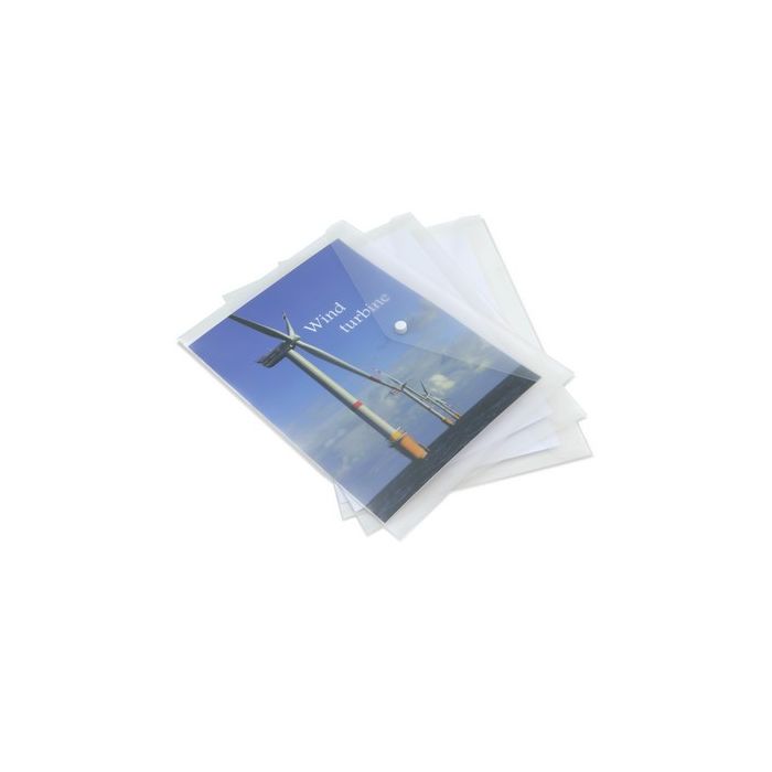 A4 ECO popper wallets made from durable Polypropylene with press stud closure. Pen holder under flap. 100% Biodegradable and 100% recyclable. Clear. Pack 5.