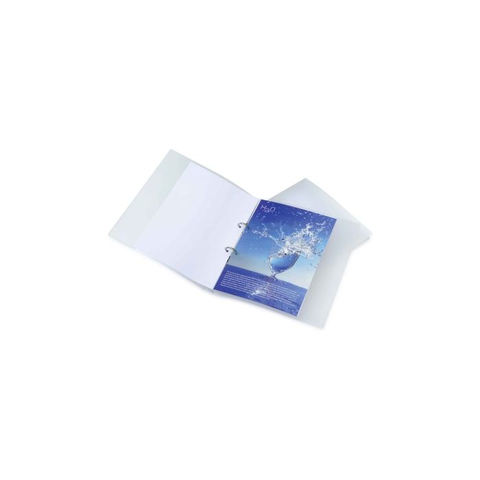 A4 ECO polypropylene ring binders made from strong durable material. 2 'O' Rings. 25mm capacity. Removable label on spine for easy indexing. 100% biodegradable and 100% recyclable. Clear. Pack 10.