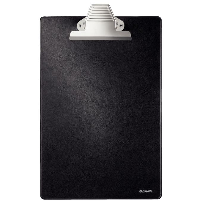 Heavy duty PVC covered clipboard. Extra-strong metal clip holds up to 200 sheets of A4 paper. Lightweight for use on the move. Includes pen holder and hanging hook. Black. A4. Each.