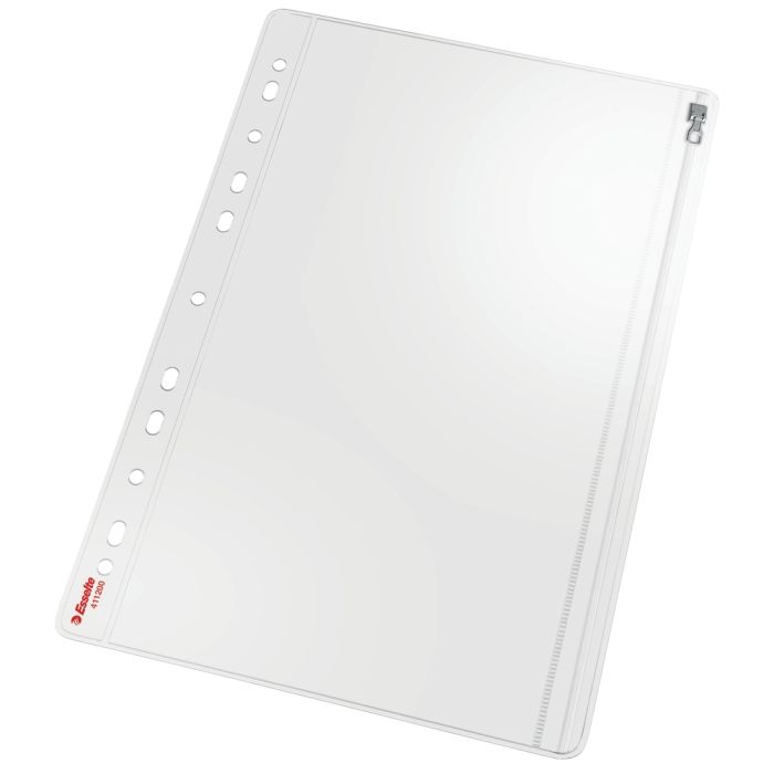 A4 Glass clear zipped wallets for the secure storage of miscellaneous items. Metal slide zipper. Extra strong 200 micron embossed soft PVC foil. Suitable for up to 40 sheets. Multipunched reinforced strip with 11 hole punching ideal for storage on the move in lever arch files and binders. 100% recyclable. Dimensions: 210 x 300mm. Pack 5.
