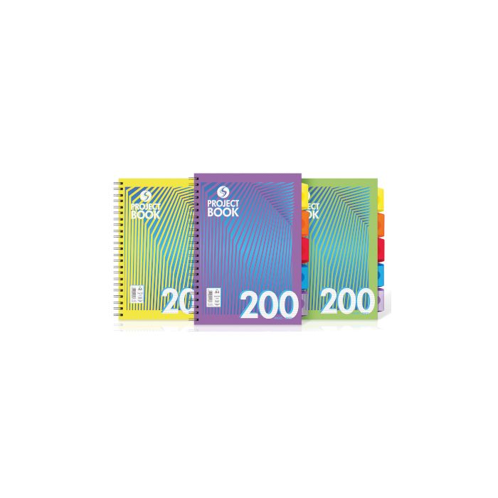 A4 Twinwire bound Project Books by Silvine. 200 80gsm lined pages separated by 5 movable dividers. Polypropylene covers in 3 assorted colours. Pack 3.