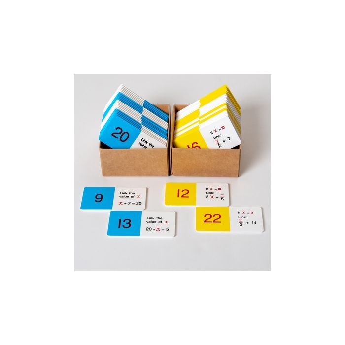 The recognition of addition/subtraction and multiplication/division as inverse operations is demonstrated and used to solve and check equations. Learning is reinforced and children gain mathematical fluency. Made from hard-wearing plastic. Two sets of 24-piece dominoes included (48 dominoes total). 40 x 80mm.