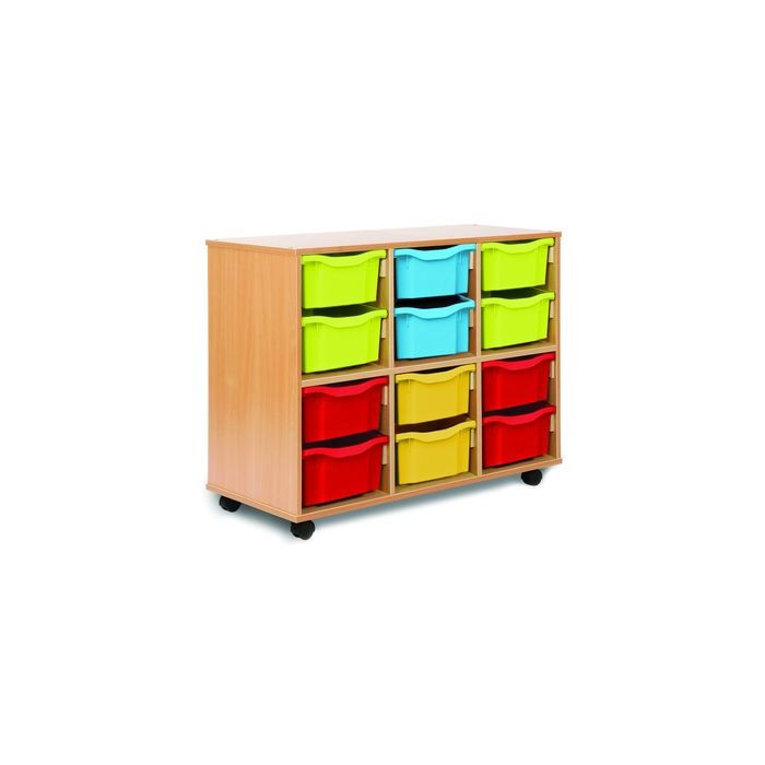 Each tray unit is supplied fully assembled and constructed using 18mm FSC certified MFC and fitted together by cam and dowel construction. Supplied with strong non-marking shatterproof twin wheeled and hooded nylon castors (two with locking facility) Built to BS EN 16121:2013 Level 2 British Standard and EU equivalent in respect of strength, durability and stability. Complete with a 5-year warranty. W1030 x D453 x H810mm.
