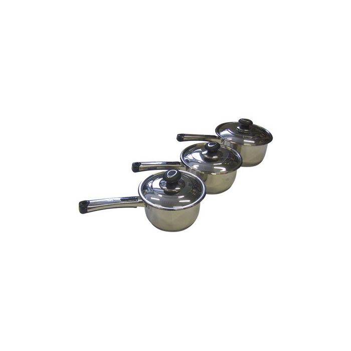 Assorted saucepan set that includes a 1.7 litre pan, a 2.1 litre pan and a, 2.7 litre pan. Perfect for all your cooking needs.