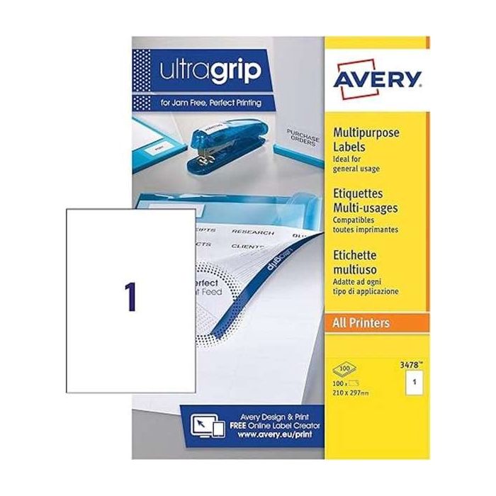 Avery JamFREE Multipurpose Labels 1 per sheet 100 pack