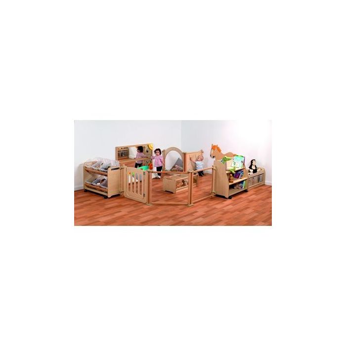Specially designed for children aged 6 months to 2 years, the Baby Zone is a cosy and safe environment within which children can discover and play. Featuring low level storage units, this zone allows young children easy access to toys and resources, whilst the Large Pull Up and Play Mirror is perfect for helping to steady toddlers on their feet. Each unit is made from scratch-resistant maple melamine with solid beech features which are durable, hard-wearing and easy to clean. 10 year manufacturer's warranty. Zone Area: 3.64m x 2.70m.