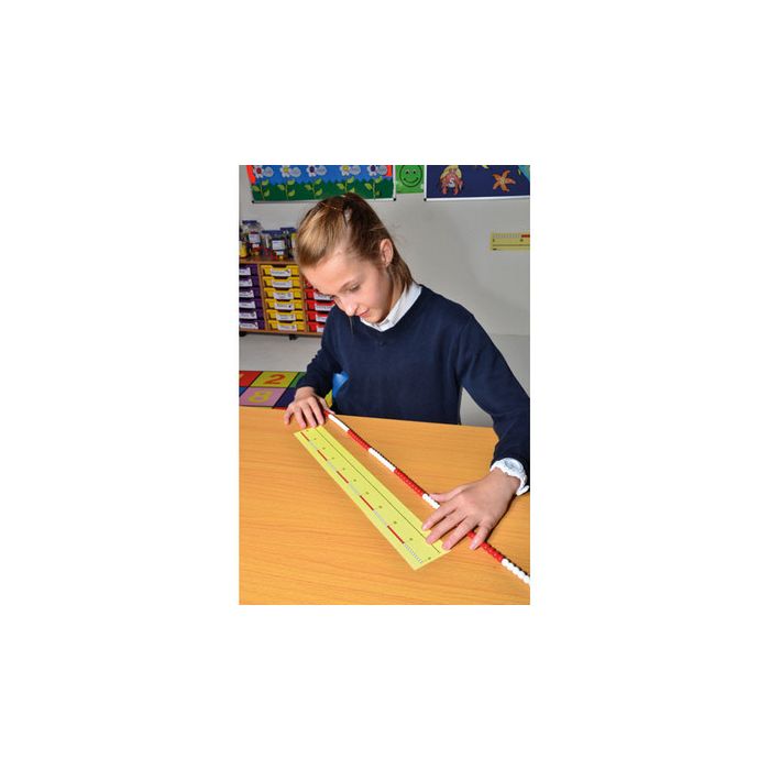 Double-sided, write-on/wipe-off surface - 0-100 beadstring and line on front, counting stick on reverse