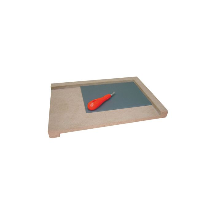Sturdy MDF construction - Simply hook on to desk or bench edge - Lino block is held firmly in upper corner for safe cutting - 200 x 300 x 35mm - Each