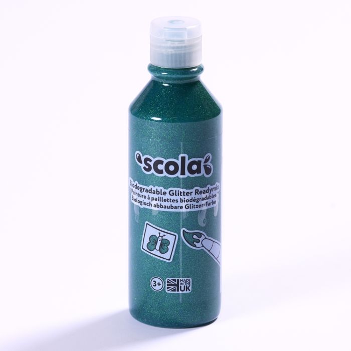 Make your artwork sparkle with this biodegradable glitter paint. Made from plants, not plastic, which are sustainably sourced so not harmful to the planet. Available in a range of colours. 300ml.