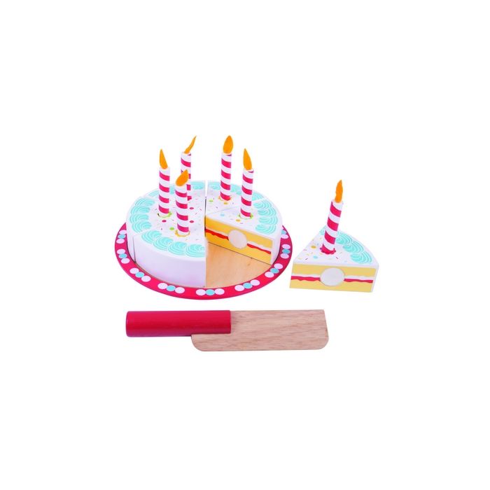 This 6 piece wooden cake is a great way for children to learn about sharing and to encourage creative and interactive play. Includes 6 removable wooden candles. Each