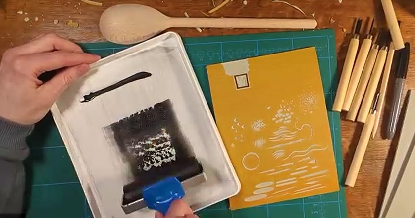 Nick demonstrated how gently rocking the tool can create flowing, wavy lines, while rotating the lino block itself allows for tighter curves and more controlled shapes.