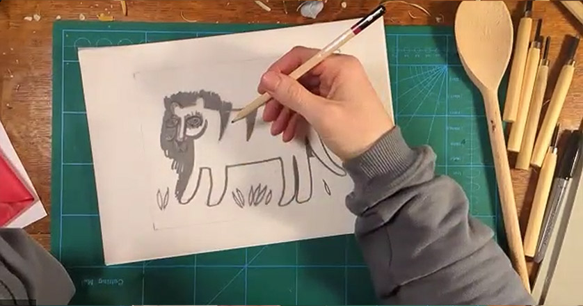 After exploring mark-making techniques, participants used their new skills to begin designing and carving a second lino block.