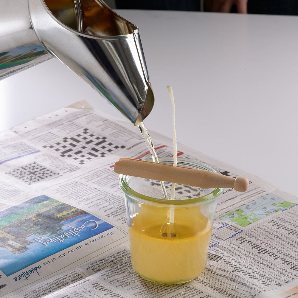 For ease of pouring, decant the wax from the double boiler or wax pot into a suitable heatproof jug.