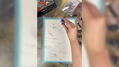 Press the transfer foil onto the dried glue, then dab and pull away quickly.