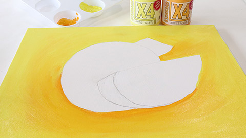 Using two shades of paint and a large round brush, start painting your background, using the darker shade of colour underneath the subject to create shadows.