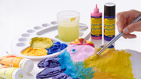Mod Roc can be painted with acrylic, ready mixed and spray paints. You can use ordinary glue such as PVA to stick other materials to the Mod Roc structure or mix 1-part PVA to 5 parts clean water and cover the surface structure with a thin layer to seal the surface. Alternatively, coat with yacht varnish for durability