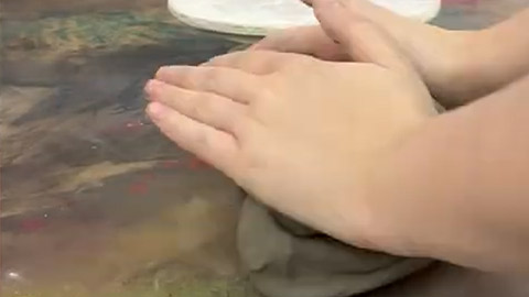 Start by thoroughly wedging the clay using a ram’s horn motion. Twist and fold the clay repeatedly, pressing it together to remove trapped air and evenly distribute moisture. This process warms the clay, improves its elasticity, and prevents cracking or explosions in the kiln later on.