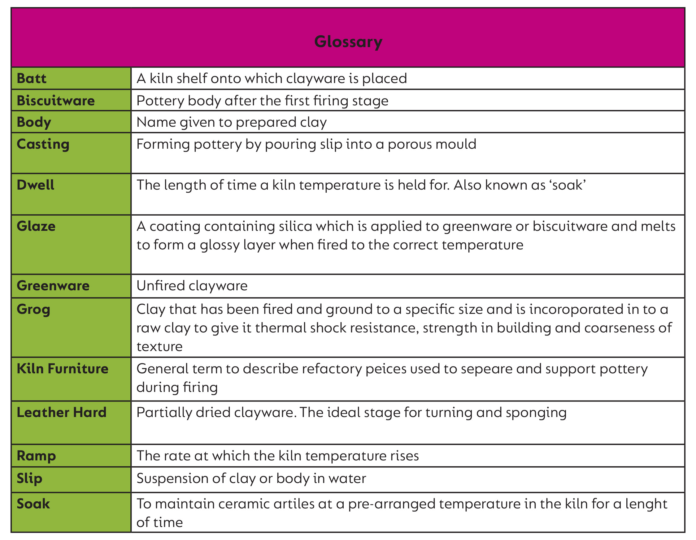 - The choice of clay colour and its properties will have an effect on the glaze finish. Some clays contain iron, for example, and specks may show through the glaze. This can produce some nice effects and should be considered. Select a glaze with a firing range which exceeds the lower temperature given for the clay. If this is not done, the clay will be underfired and the glaze may crack. See which glaze you need on page 376.