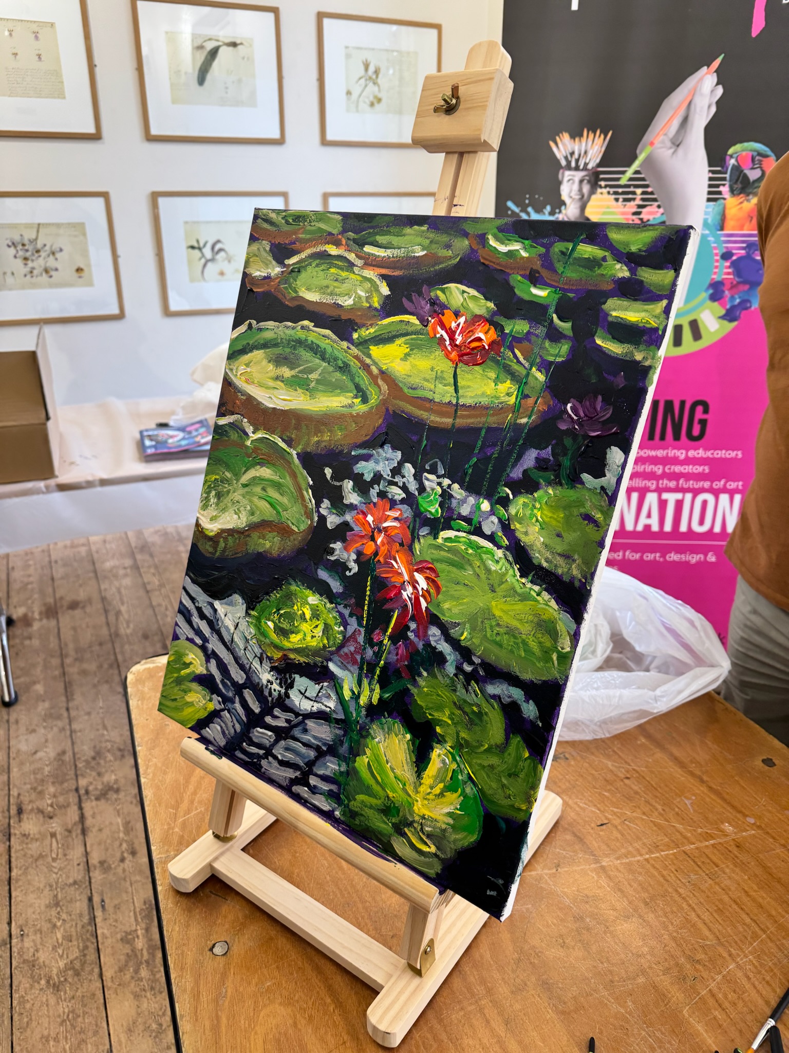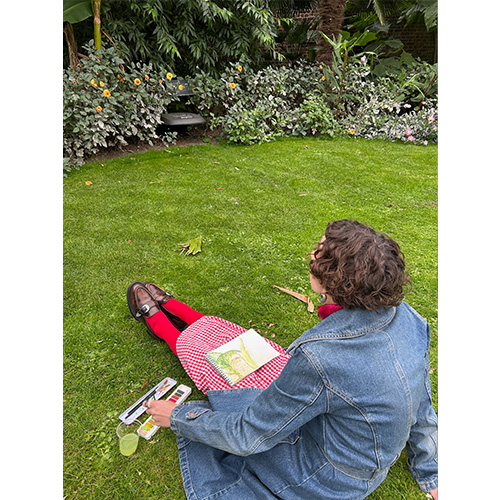 The day began in Cambridge Cottage where Timmy introduced the workshop with a look at some of his favourite paintings of Kew Gardens. What stood out most was how differently each artist had approached the same subject. Some used bold, sweeping colour while others focused on fine architectural details or the softness of flowers. Even when the subject was the same, the results were completely different. Timmy’s enthusiasm and humour made the showcase fizz with energy which set us up perfectly for a day of creativity.