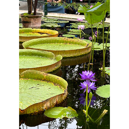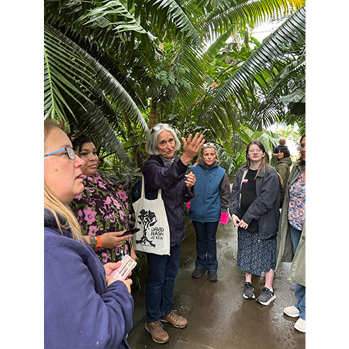 We set off on a guided walk through the gardens, taking in some of Kew’s most famous glasshouses, including the Palm House and the Waterlily House. The giant lily pads were a particular highlight, sparking plenty of ideas for colour and shape. Along the way we took plenty of photos to use later as inspiration for sketches and paintings.