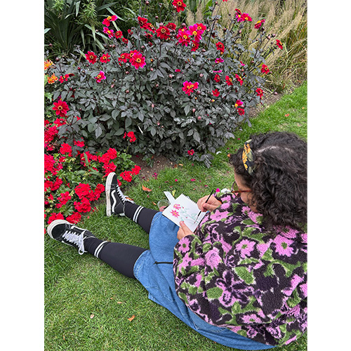 Back at Cambridge Cottage, everyone gathered their sketchpads and watercolours before heading outside for some plein air sketching. Stopping to capture real-life flowers and plants gave the group a chance to slow down and experiment with mark making. We loved seeing the variety of approaches, from quick, loose colour studies to delicate line work. Some of the sketches were beautiful in their own right and showed just how differently everyone responded to the same surroundings.