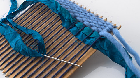 Beads and other embellishments can also compliment your weaving – try threading beads into the weft of your fabric as you create it, or threading them onto the fringe of your finished weaving. Additional fringe can also be added to the edge of your weaving, and secured with a lark’s head knot.