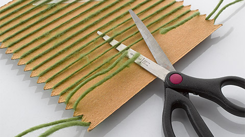 • Turn the loom over, remove the sticky tape, and cut the warp threads across the centre