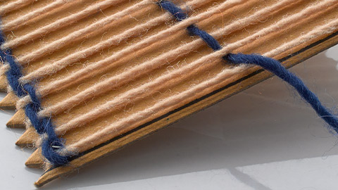 Whatever you are making and whichever weave you choose, ensure there is firm tension on the warp. Tie the two ends to the edge serrations and secure at the back with sticky tape.