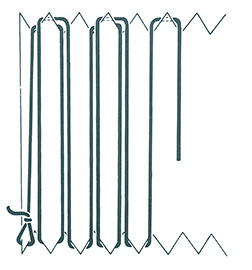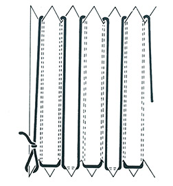 Use either cotton yarn or wool and pick the same material for warp and weft when making small scarves, place mats etc. Following image 2, wind the warp so that there are two threads to each serration. Thread the weft in the usual way picking up alternate individual threads.