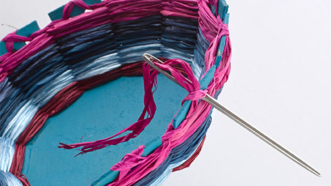 When you come to the end of your yarn, leave a tail of at least 10cm hanging on the outside of the basket, and start weaving with a new length of yarn, following the same directions as before. Continue weaving until you reach the edge of the basket.