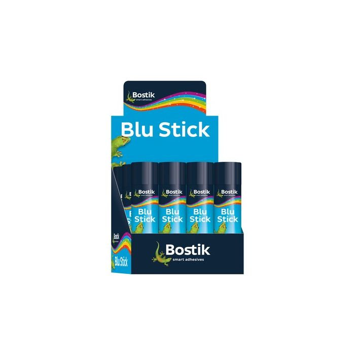 Bostik Blu Stick is a solvent free, odourless and easy to use solid glue stick. Bostik Blu Stick goes on blue so you can see where you're sticking, then dries clear. Ideal for use on most paper-based materials. 36g glue stick. Pack of 12. £1.16 per glue stick.