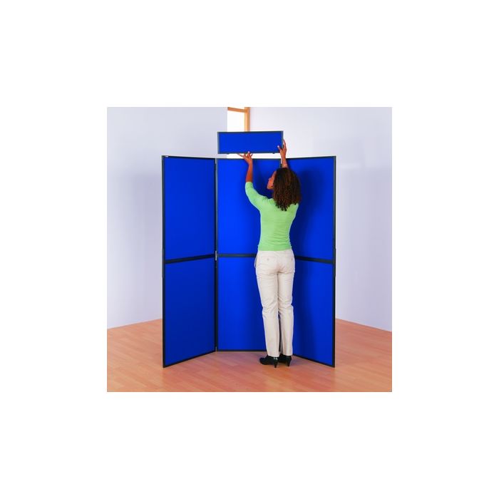 Busyfold Light system kits include headers and a carrying bag. These packages are a cost effective solution to purchasing a folding display system. Lightweight folding panel system with 600 x 900mm panels framed in black PVC. Panels are linked with flexible hinging and clip together for easy assembly. 6 or 7 panel kit with a single header, 8 and 10 panel options have 2 headers. 7 and 10 panel unit features triangular plinth/s for displaying 3D objects. Free rugged carry bag/s. Double sided panels are covered in a choice of 14 loop nylon colours which are fire retardant to BS5867. Accepts Velcro or Busyfix as well as pins