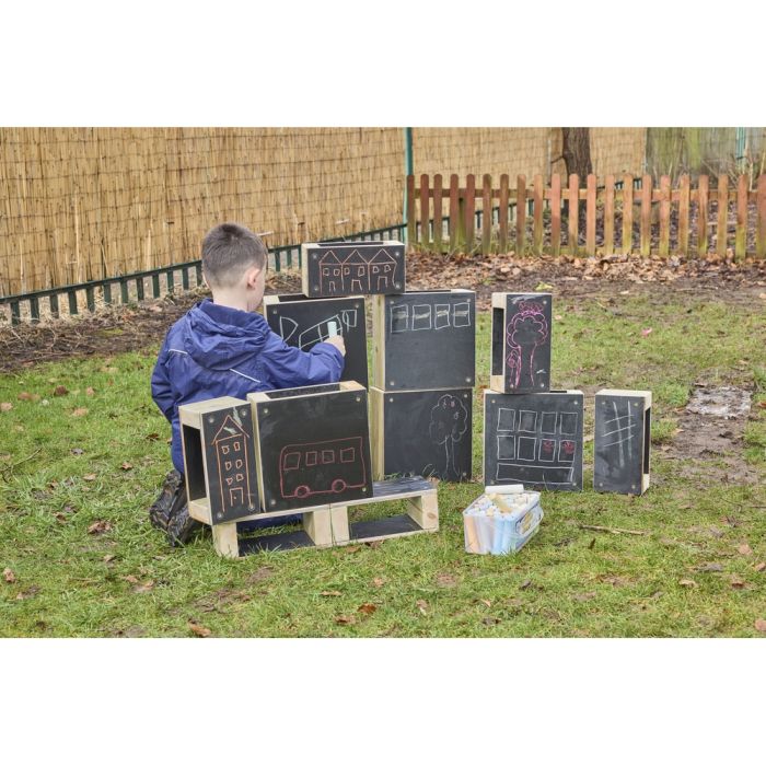 Transform your outdoor classroom into a vibrant learning environment with our innovative Chalkboard Building Blocks. Specifically designed for primary schools, these squares and rectangle blocks are more than just building materials; they’re versatile tools that encourage creativity, collaboration, and critical thinking among young learners. Each block features a smooth chalkboard surface, allowing students to draw, write, and express their ideas right. This unique feature promotes interactive learning and enhances visual engagement. Crafted from high-quality, non-toxic materials, our building blocks are designed to withstand the rigors of everyday classroom use while ensuring the safety of your students. Perfect for a variety of activities, from building structures to teaching geometry and spatial awareness. Use them for group projects, individual exploration, or as a hands-on tool for math lessons. These building blocks foster teamwork and communication as students work together to create and solve problems. Simply wipe with a damp cloth, and they’re ready for the next round of creativity. Incorporating our Chalkboard Building Blocks into your classroom enhances the learning experience by blending play with education. They’re ideal for: STEM Learning, Artistic Expression and Critical Thinking.